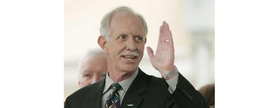 U.S. Airways pilot Chesley Sullenberger III, who safely landed a US Airways plane in the Hudson River, waves as he enters a celebration in Danville, CA, January 24th, 2009. All 155 people aboard the airplane survived.