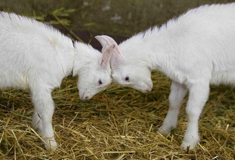 Yearlings butt their heads together at a private farm near the village Lizavetin, southwest of Minsk. The farm is one of the few in Belarus specializing in breeding goats and producing goat cheese.